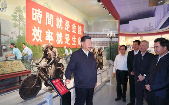 10月24日,中共中央總書(shū)記、國(guó)家主席、中央軍委主席習(xí)近平來(lái)到深圳市福田區(qū),在深圳市當(dāng)代藝術(shù)館與城市規(guī)劃展覽館參觀了“大潮起珠江——廣東改革開(kāi)放40周年展覽”。隨后又前往深圳前??疾欤瑓⒂^了深圳市萬(wàn)科前海企業(yè)公館展覽廳。