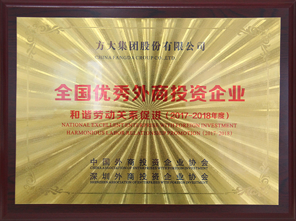12月11日,全國(guó)優(yōu)秀外商投資企業(yè)表彰大會(huì)在深圳隆重舉行,方大集團(tuán)因在遵守國(guó)家勞動(dòng)法律法規(guī)、熱心關(guān)愛(ài)員工、創(chuàng)新企業(yè)文化、和諧勞動(dòng)關(guān)系方面做出的突出成績(jī)榮獲2017-2018年度“全國(guó)優(yōu)秀外商投資企業(yè)——和諧勞動(dòng)關(guān)系促進(jìn)”獎(jiǎng)。